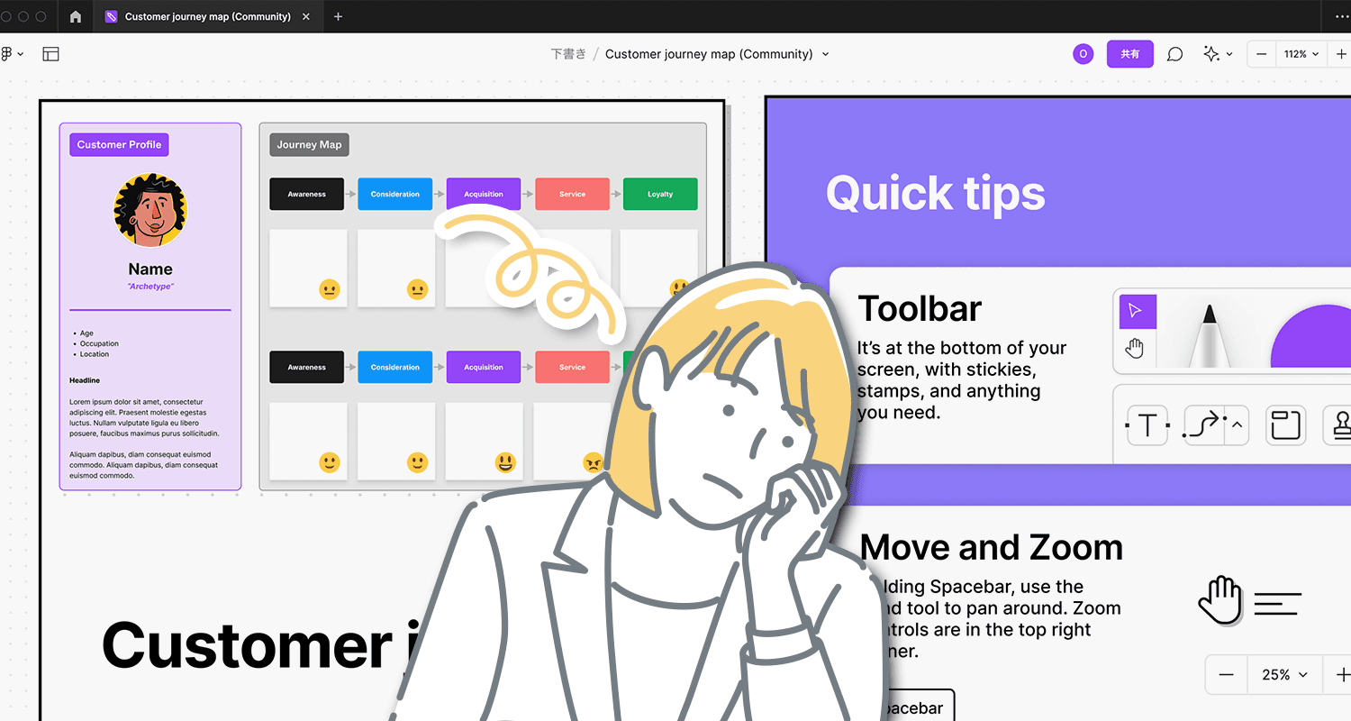 カスタマージャーニーマップのテンプレートも用意されているので、すぐに始められるでしょう。