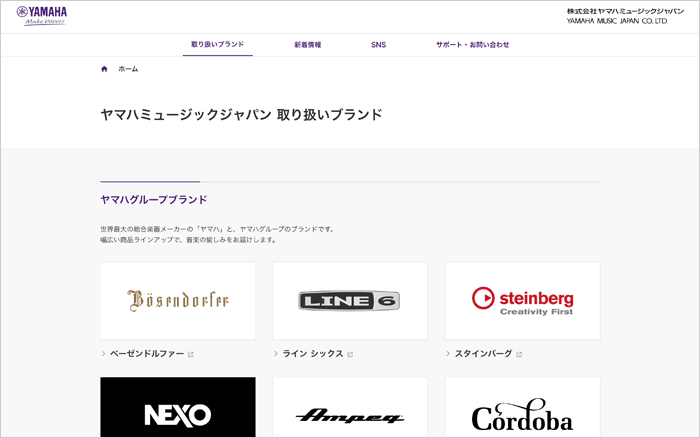 「ヤマハミュージックジャパン 取り扱いブランド」サイト