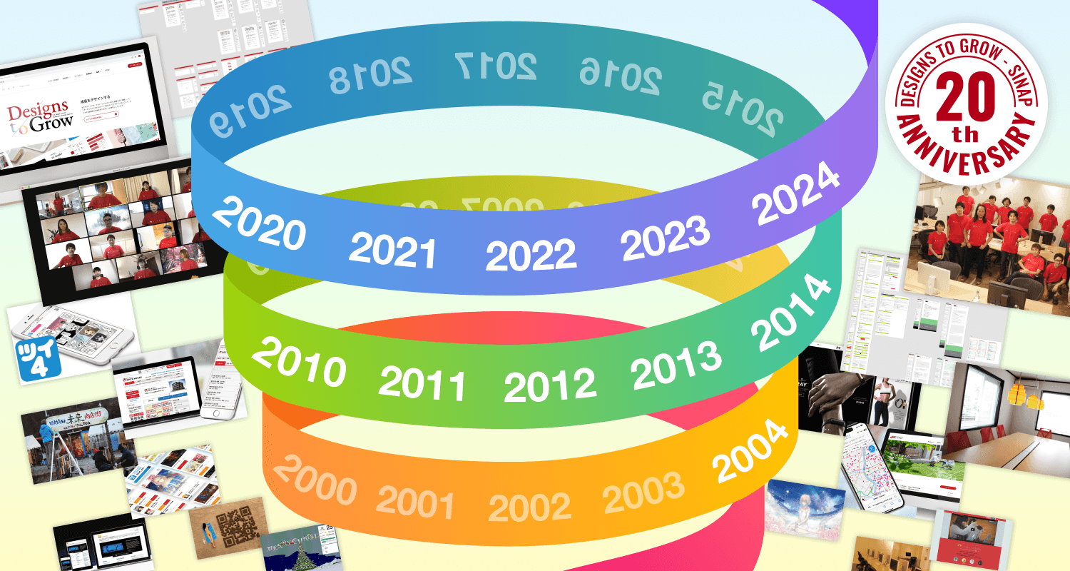 シナップ設立から20年、時代は大きく移り変わりましたが、ただひとつ変わらないのは「デザインによる課題解決」というスタンスと「クライアントとより良いサービスを作り成長させていたい」という思いです。