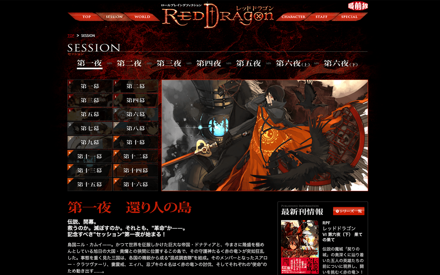 『レッドドラゴン』はTRPG(Table-Talk Role PlayingGame)のルールをベースに、このためだけに創られたオリジナルゲームです。人気作家の虚淵玄氏、奈須きのこ氏、紅玉いづき氏、しまどりる氏、成田良悟氏の5人がそれぞれプレイヤー(登場人物)として参加。真剣勝負のセッションをグループSNE出身の三田誠氏がFiction Masterとして物語を紡いでいく、全く新しいタイプのフィクションです。 このためだけに設計されたルールシステムは三田誠氏ならびに「TRPG界にこの人あり」と謳われる三輪清宗氏、小太刀右京氏。さらに音楽を『FINAL FANTASY XII』『タクティクス・オウガ』の崎元仁氏が担当し、物語を盛り上げるという、前代未聞のエンターテイメントコンテンツです。