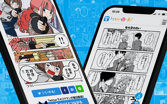 Twitter上で25万フォロワーを誇る、4コママンガの連載メディア。 日本のTwitter上では、イラストやマンガが流行ることから、その特性を踏まえてフォーマットや更新頻度、内容のトライ&エラーを繰り返しながら現在に至ります。Twitter上では、続きものが読みづらいため別途ビューアーも作成し、Webメディアとして運営しています。